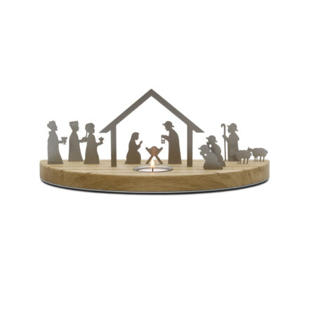 Stilvolles Schattenspiel für den erlesenen Geschmack. Die Weihnachtskrippe Silhouette S von unoferrum überzeugt durch ihr durchdachtes, klares Design und ihre hochwertigen Materialien. Auf einer handgeschliffenen halbrunden Vollholzplatte können dank eingelassener Nuten 3 präzise lasergeschnittene Figuren aus fein gebürstetem Edelstahl platziert werden. Ist die Weihnachtszeit vorbei, lassen sich die Figuren platzsparend auf der Unterseite der Holzplatte aufbewahren. Sie haften dort perfekt auf ihren magnetischen Silhouetten. Auf diese Weise hat alles seinen Platz und kein Teil kann verloren gehen. Silhouette wird komplett in unserer Manufaktur in Deutschland handgefertigt. Es stehen 5 unterschiedliche Materialitäten zur Auswahl: Ahorn, Buche, Eiche, Nussbaum und unsere eigene Kollektion Signature, die nur hier im unoferrum Onlineshop erhältlich ist.